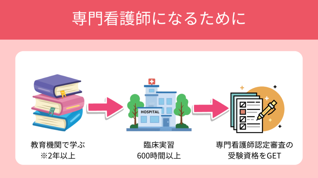 専門看護師になるためのステップは、以下のとおりです。